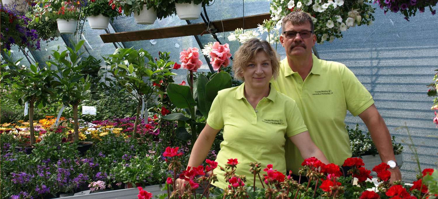 Hej! Thurgårdens Handelsträdgård är ett familjeföretag som drivs av Anders och Beata Thurborg. Vi finns på Öland, två km söder om Färjestaden, nära till både Kalmar och Borgholm. De första plantorna drevs upp 1999 i ett växthus på 11 m2 och idén om en handelsträdgård föddes. Sedan dess är företaget under ständig utveckling och expansion tack vare ett stort intresse och ökad efterfrågan från våra kunder.