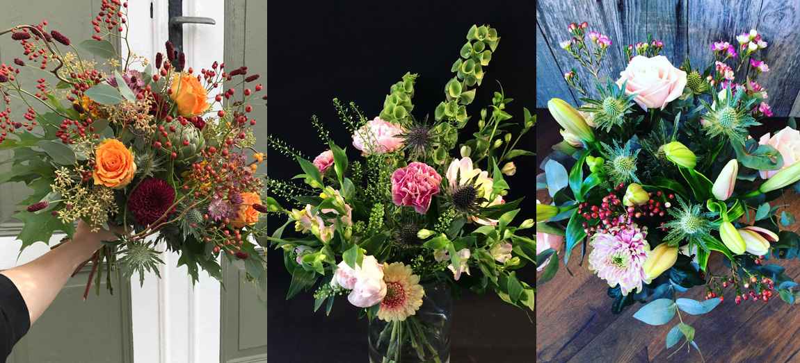 Höstblommor: ljung, kryssantemum, bollkryss mm